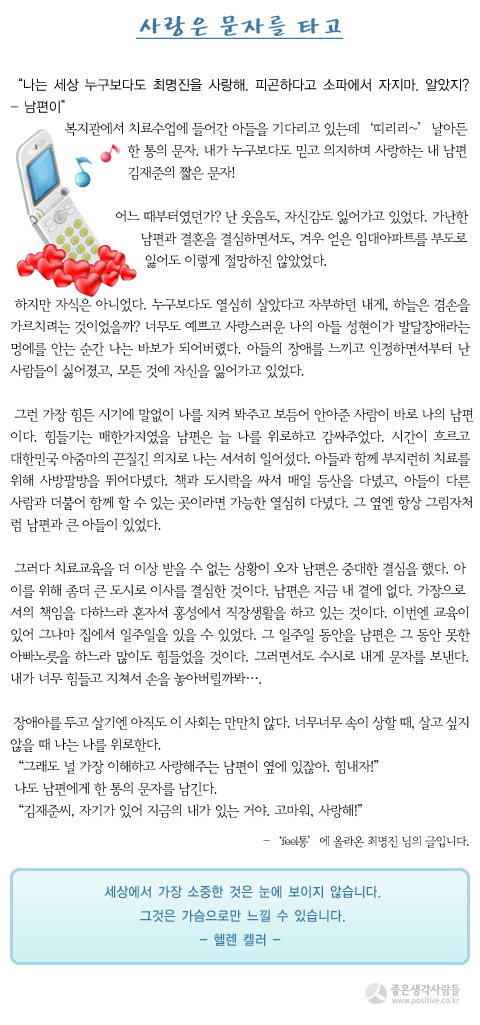 ´ëÀüÀ¸·Î À̻簣Áö 3³â°°¡ µÆ´Â°¡º¾´Ï´Ù. ºÎÁ·ÇÑ ¾ÆµéÀ» Ű¿ö°¡¸ç ¿ì¸® ¾ö¸¶µé¿¡°Ôµµ ÈûÀ» ÁÖ¾ú´ø ¼ºÇö¾ö¸¶ ÁÁÀº»ý°¢À̶ó´Â ¿ù°£Áö¿¡ °¨µ¿ÀÇ ±ÛÀ» ¶ç¿î °ÍÀ» À̰÷ÆÄÀÏ¿¡ ¿Ã·Áº¾´Ï´Ù. ÆÄÀÏÀ» Ŭ¸¯ÇØ º¸¼Å¿ä. Àо½Ã°í ÈûÀ» ³»°í ¹®ÀÚ·Î ¼·ÎÀÇ ¾ÈºÎµµ ÀüÇØ º¾½Ã´Ù.